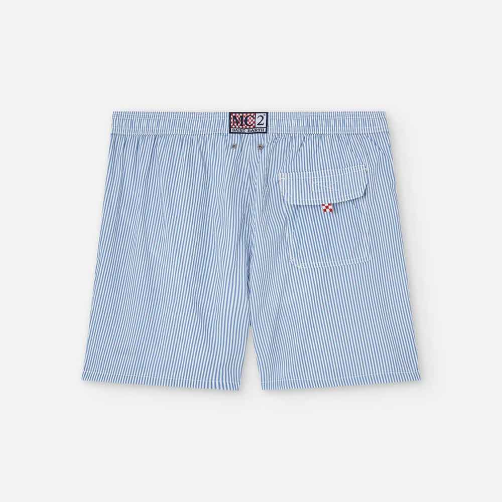 Swimsuit MC2 Saint Barth Patmos model with seersucker fabric and striped design. Sophisticated style with a classic and summery touch.