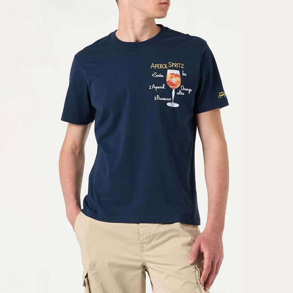 T-shirt Made of cotton with Spritz 61 embroidery by MC2 Saint Barth. A summery, fresh and full of personality design, ideal for lovers of Mediterranean style.