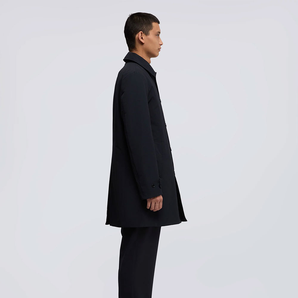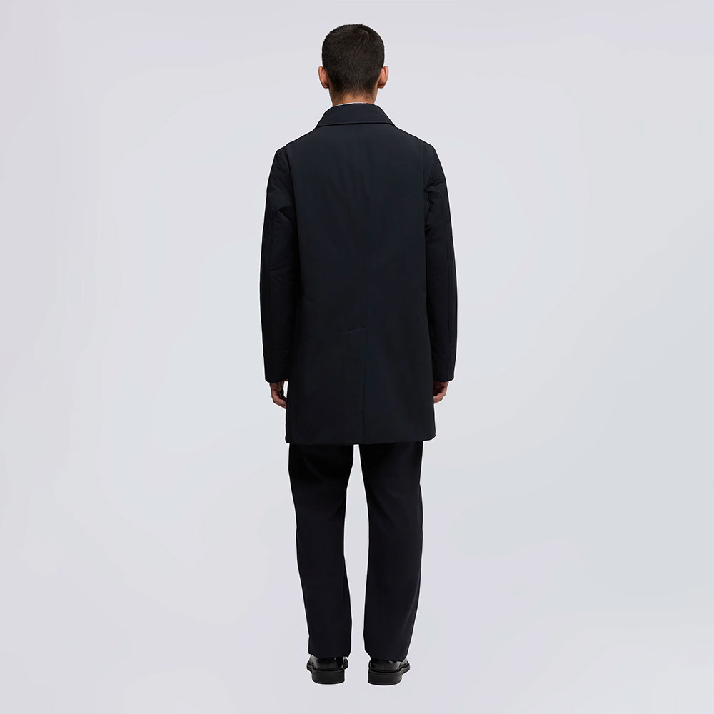 La silueta estructurada y el color azul oscuro (navy) permiten integrarlo fácilmente en cualquier guardarropa urbano o de oficina. Fiel al espíritu de Aspesi, esta prenda equilibra la técnica textil y la discreción estética, ofreciendo una pieza versátil para quienes valoran la calidad italiana y la durabilidad.
