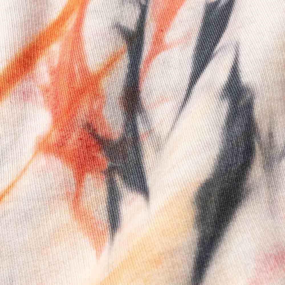 La sudadera Aries Arise Tiger Dye No Problemo está confeccionada en algodón 100% de alta calidad con interior afelpado, que proporciona un tacto suave y una gran comodidad durante todo el día. Este modelo destaca por su exclusivo acabado tiger dye, realizado mediante un proceso de teñido manual que genera un efecto visual único en cada prenda, reforzando su carácter artesanal y diferenciador dentro del streetwear contemporáneo.
