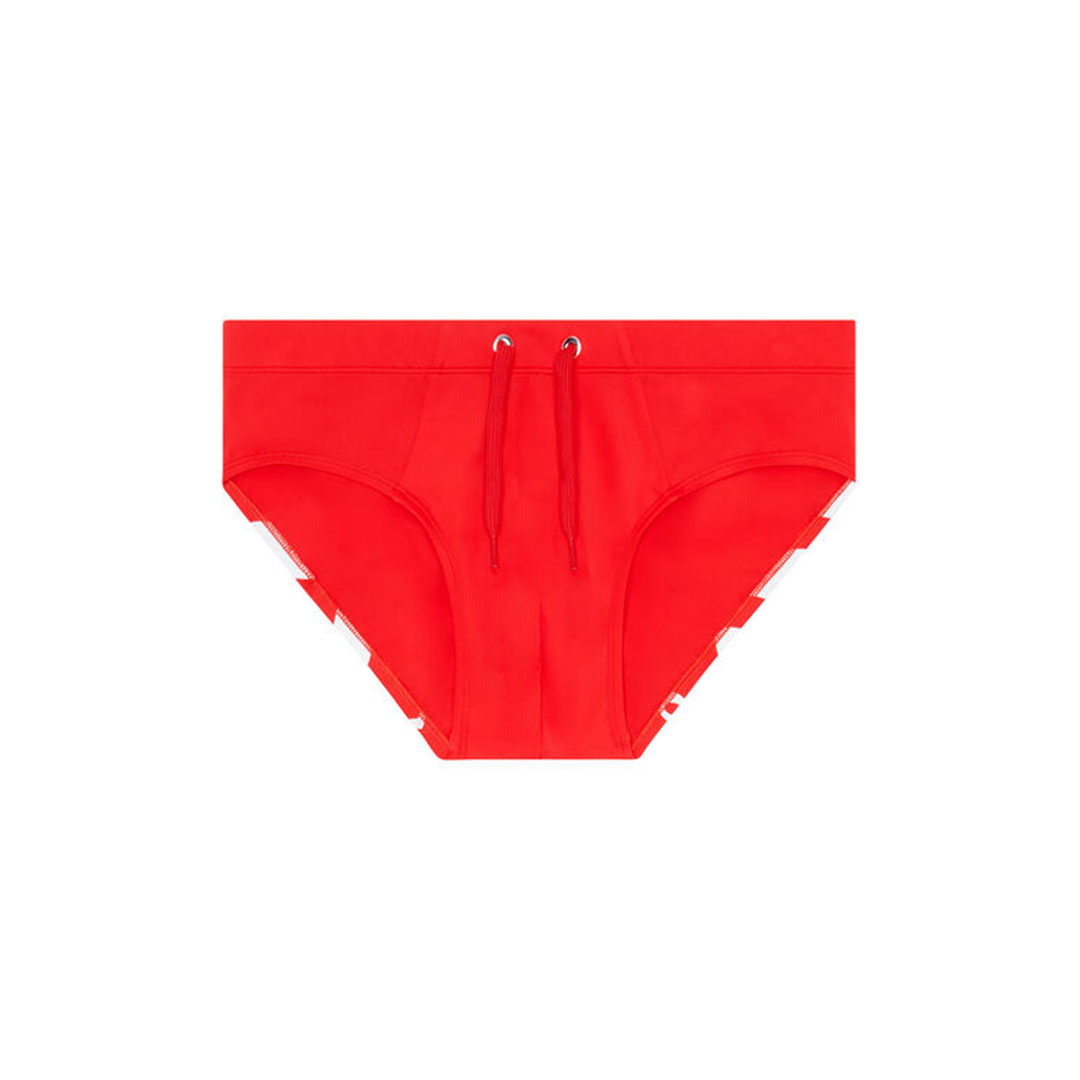 El bañador BMBR-ALFIE de Diesel en vibrante color rojo es una prenda veraniega con fuerte inspiración retro. Su diseño clásico de largo medio está confeccionado con tejido ligero de secado rápido, ideal para disfrutar tanto en la playa como en la piscina. Incorpora una cinturilla elástica con cordón ajustable, un bolsillo trasero con solapa y detalles en contraste, como el logotipo Diesel bordado en la pierna izquierda. Su ajuste cómodo y su diseño atemporal lo convierten en una opción versátil y con estilo para el verano.