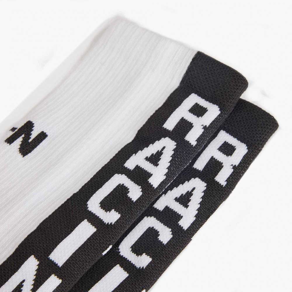 Fabricados en tejido de punto de alta calidad (algodón predominante) y con atención al detalle en el diseño: el largo de caña asegura presencia visual, mientras que el branding seguramente está tejido o aplicado de manera discreta y funcional. Estos calcetines no solo completan el look, también se posicionan como accesorio clave para quienes buscan piezas colaborativas limitadas de alto impacto estético.