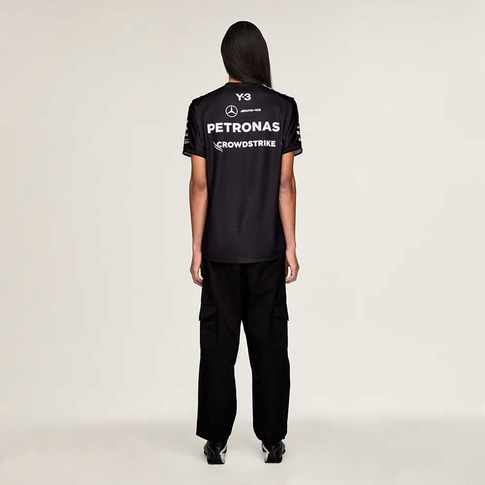 La camiseta MC Y-3 Mercedes AMG Petronas F1 Team Driver KT2226 es una pieza clave dentro del universo Y-3, donde la innovación deportiva de adidas se fusiona con la visión vanguardista de Yohji Yamamoto.