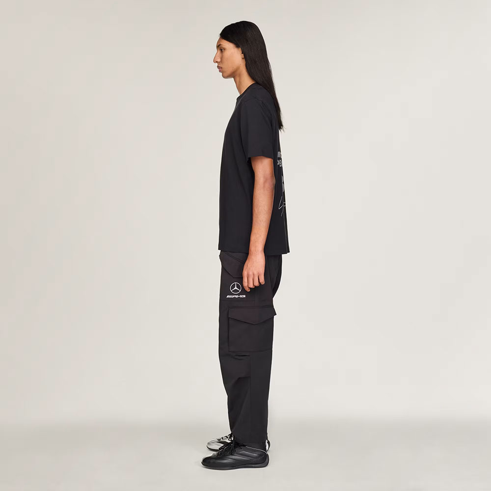 Su diseño destaca por el estampado gráfico “Logo Stack”, que aporta un impacto visual moderno y refuerza la identidad de la colaboración entre Y-3 y Mercedes AMG Petronas. Esta fusión entre moda de vanguardia y herencia deportiva convierte la camiseta en una pieza clave dentro del streetwear contemporáneo.