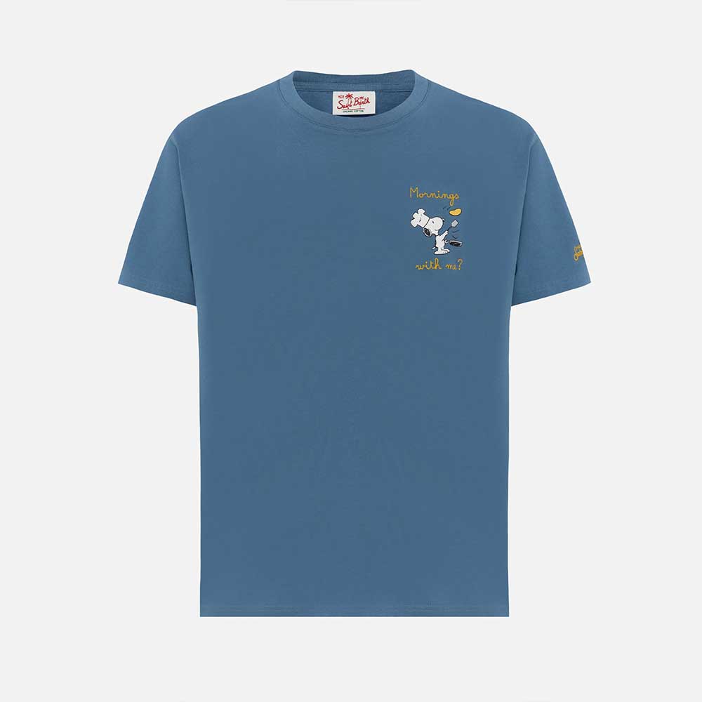 La camiseta Snoopy Mornings 33 Emb. de MC2 Saint Barth es una pieza única de la colección especial Peanuts®, perfecta para los amantes del estilo casual con un toque desenfadado y artístico. Fabricada en 100% algodón orgánico, esta prenda combina sostenibilidad, confort y diseño.