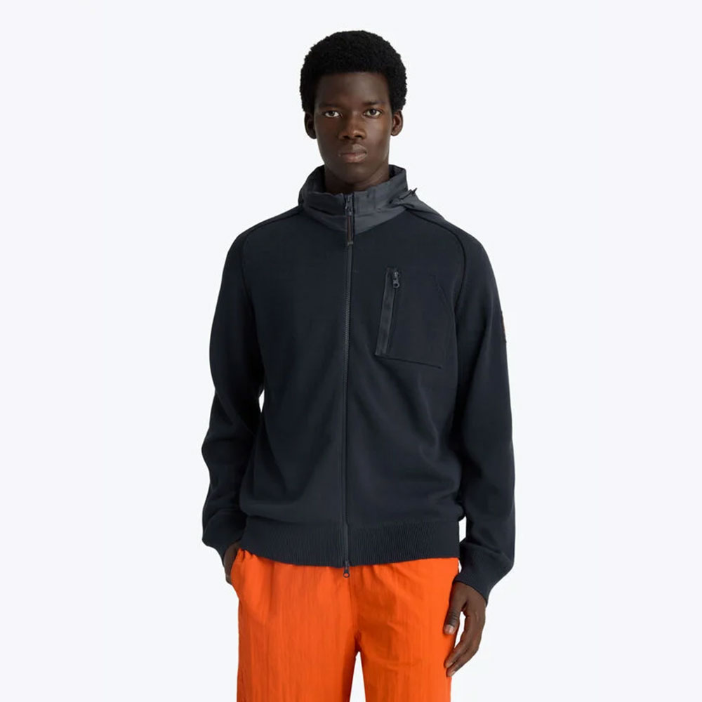 El cárdigan cremallera completa Bargancy 0571 Ink Blue de Parajumpers pertenece a la serie Rescue Knit, una línea que combina el confort del punto con detalles técnicos inspirados en la estética funcional de la marca.