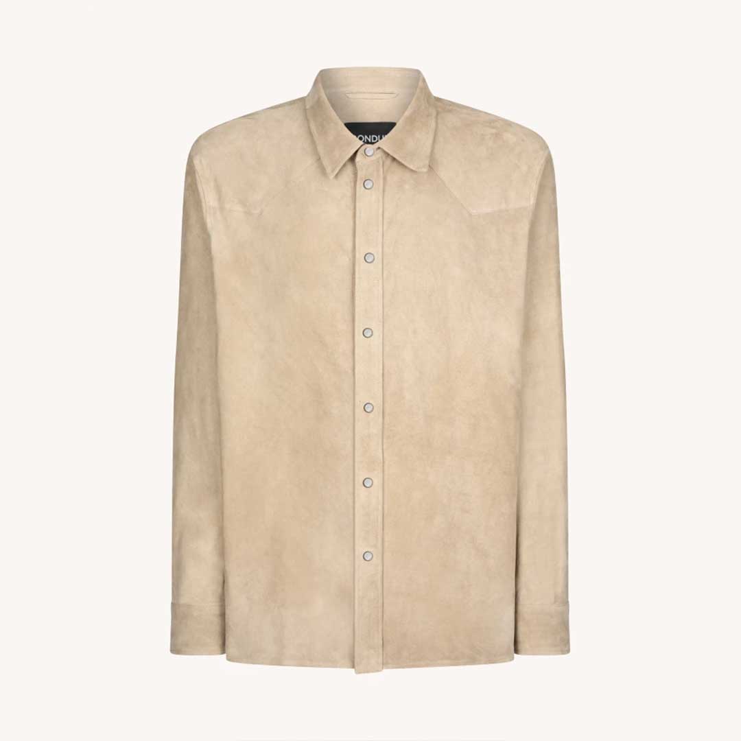Esta chaqueta-camisa de Dondup combina la elegancia del ante con un diseño inspirado en el estilo western. Confeccionada en 100 % ante de cordero, ofrece una textura suave y un acabado de alta calidad. Presenta un corte regular que se adapta cómodamente al cuerpo, un canesú en pico en la parte delantera y cierre de botones a presión tanto en la parte frontal como en los puños. El logo metálico de Dondup en la parte trasera del cuello añade un detalle distintivo. Fabricada en Italia, esta prenda es ideal para quienes buscan un estilo sofisticado y atemporal.