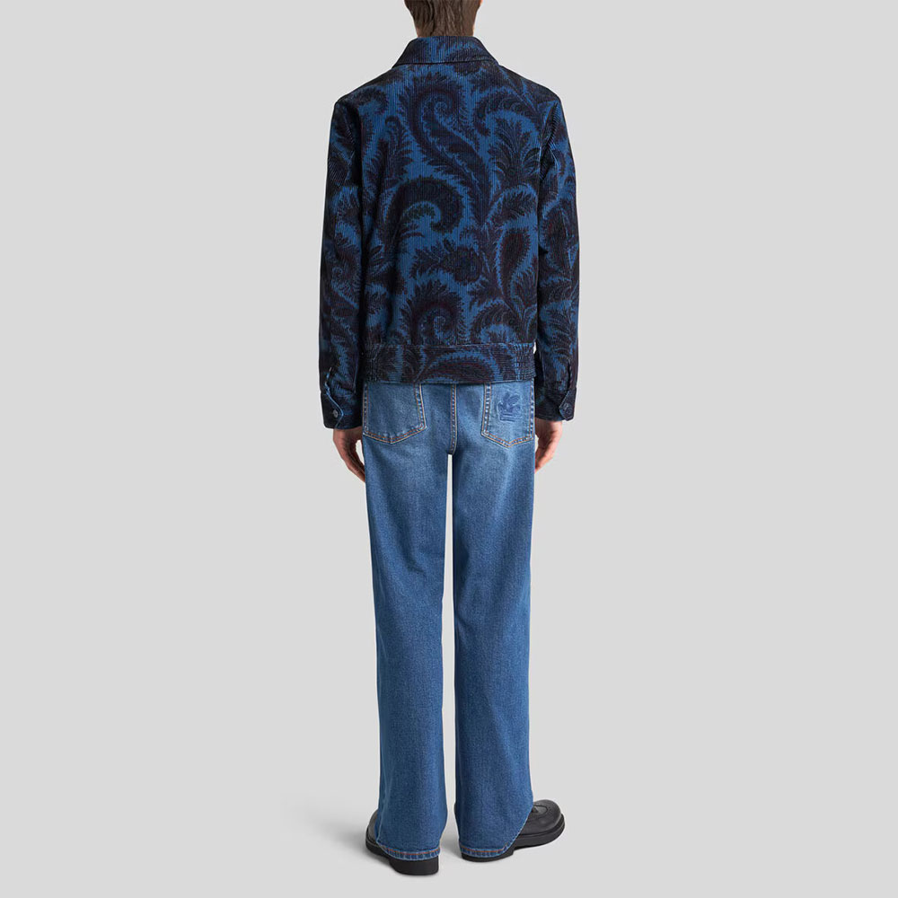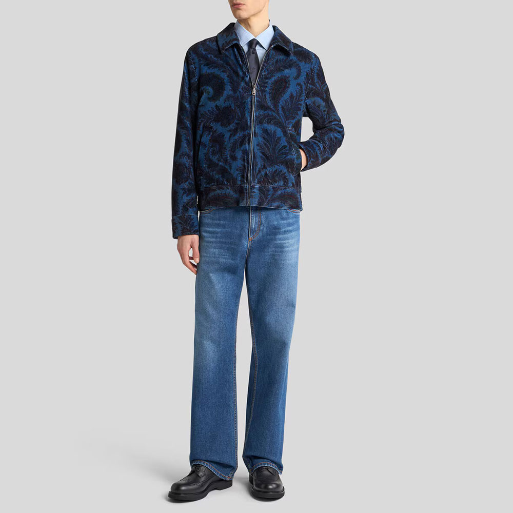 Chaqueta bomber de terciopelo Shirt Collar 99SA5K7 X0883 Etro representa la esencia del lujo contemporáneo con carácter artístico. Este diseño con estampado Paisley combina el corte relajado de una chaqueta bomber con la sofisticación del terciopelo italiano, decorado con el icónico estampado cashmere de la firma.