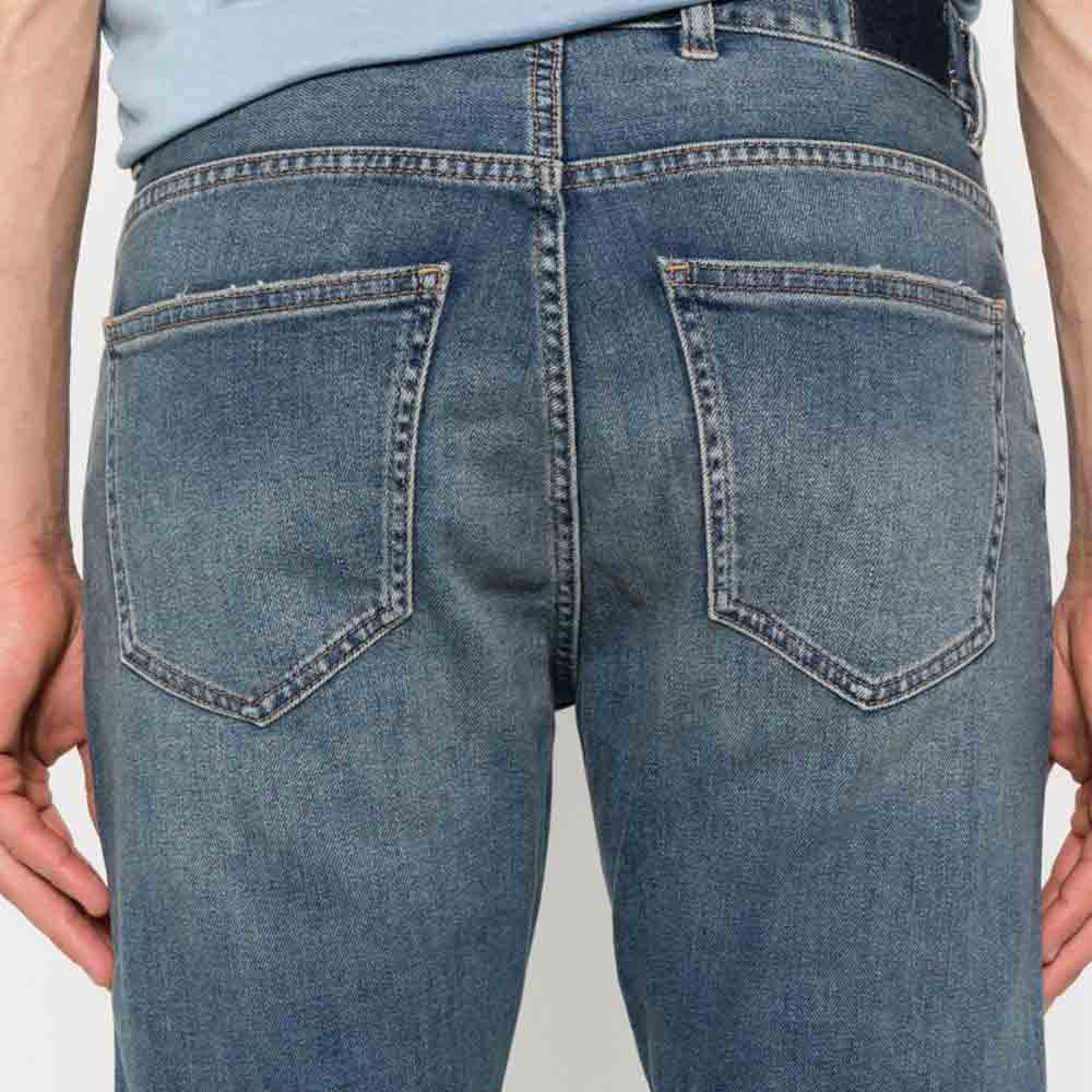 El diseño five-pocket clásico se actualiza con detalles de alta calidad: trabillas reforzadas, cierre de botón y cremallera, lavado en tono azul medio (“08”), y un ajuste recto que aporta soltura sin perder elegancia. Perfecto para combinaciones “smart-casual”, este par se adapta tanto a una blazer informal como a un look urbano relajado.