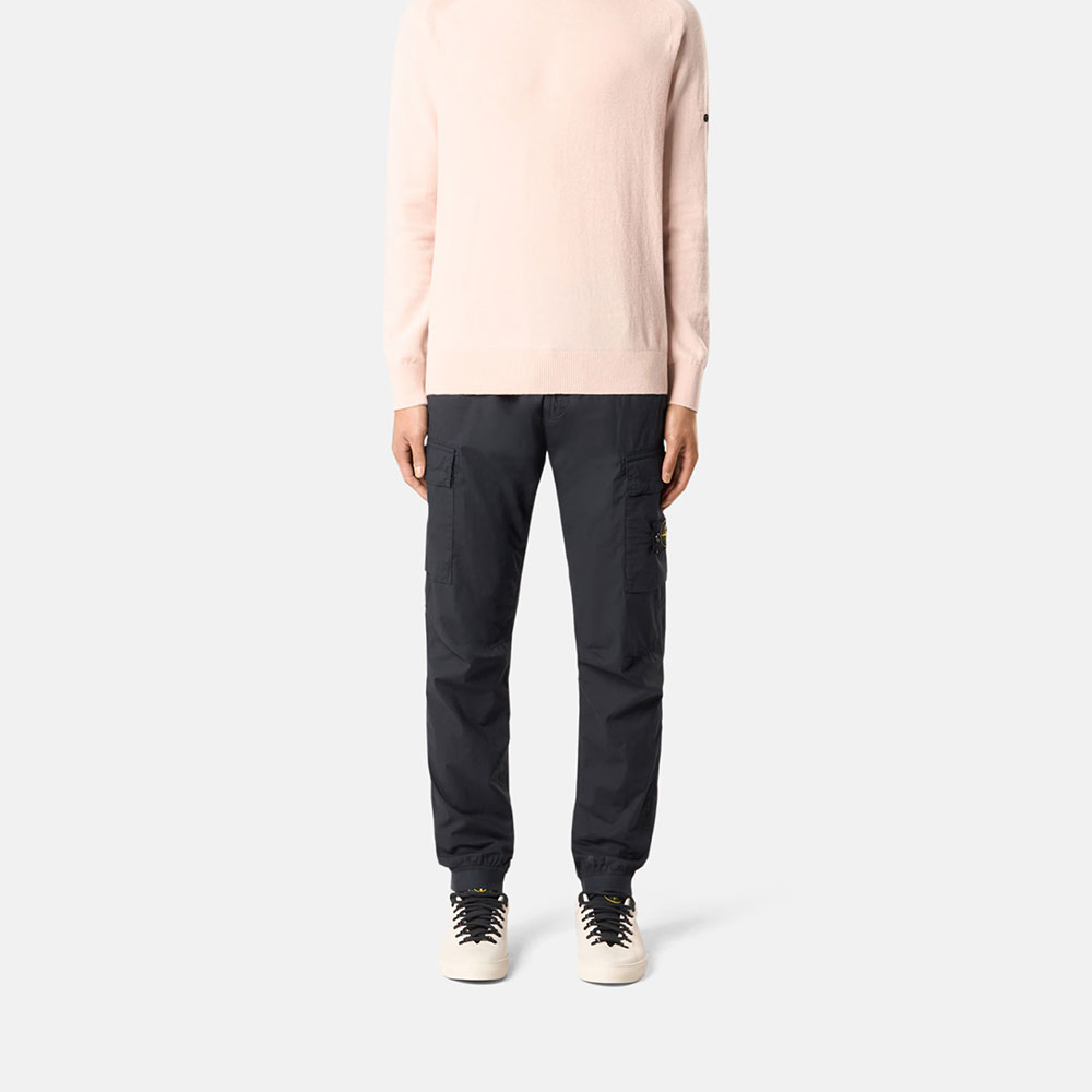 El color azul marino (V0020) les confiere versatilidad para combinar con cualquier look casual o urbano. Incluyen el icónico parche removible de Stone Island en la pierna izquierda, símbolo de calidad e innovación textil. Una prenda ideal para quienes buscan estilo, confort y exclusividad en su vestuario diario.