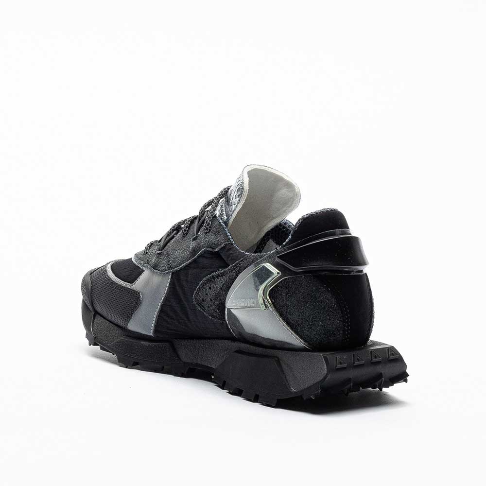 - Fabricación italiana con empeine en ante negro, ripstop y detalles reflectantes