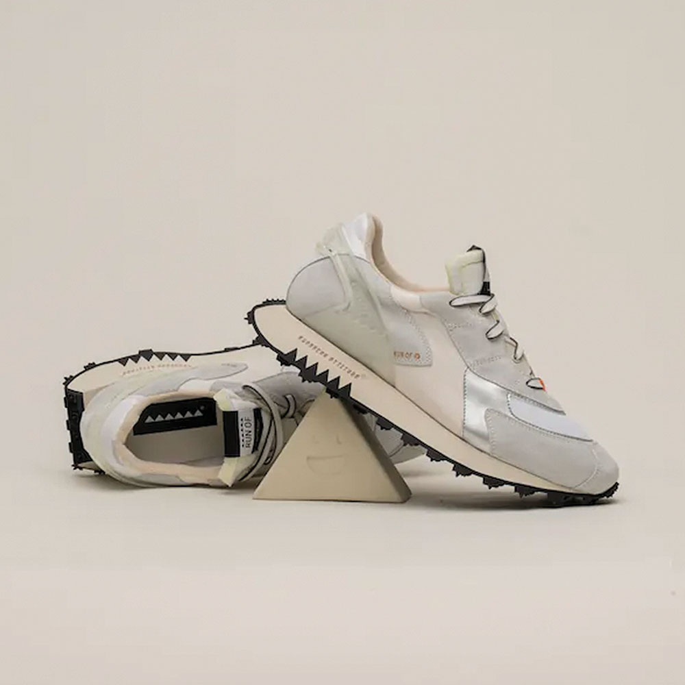 Las zapatillas París Run Of destacan por su combinación de artesanía italiana y diseño innovador. Confeccionadas en piel, nobuk y tejidos técnicos de alta calidad, ofrecen un ajuste cómodo y un look sofisticado que eleva cualquier conjunto urbano. Su característica suela dentada y los detalles de color las convierten en una pieza única para esta temporada.